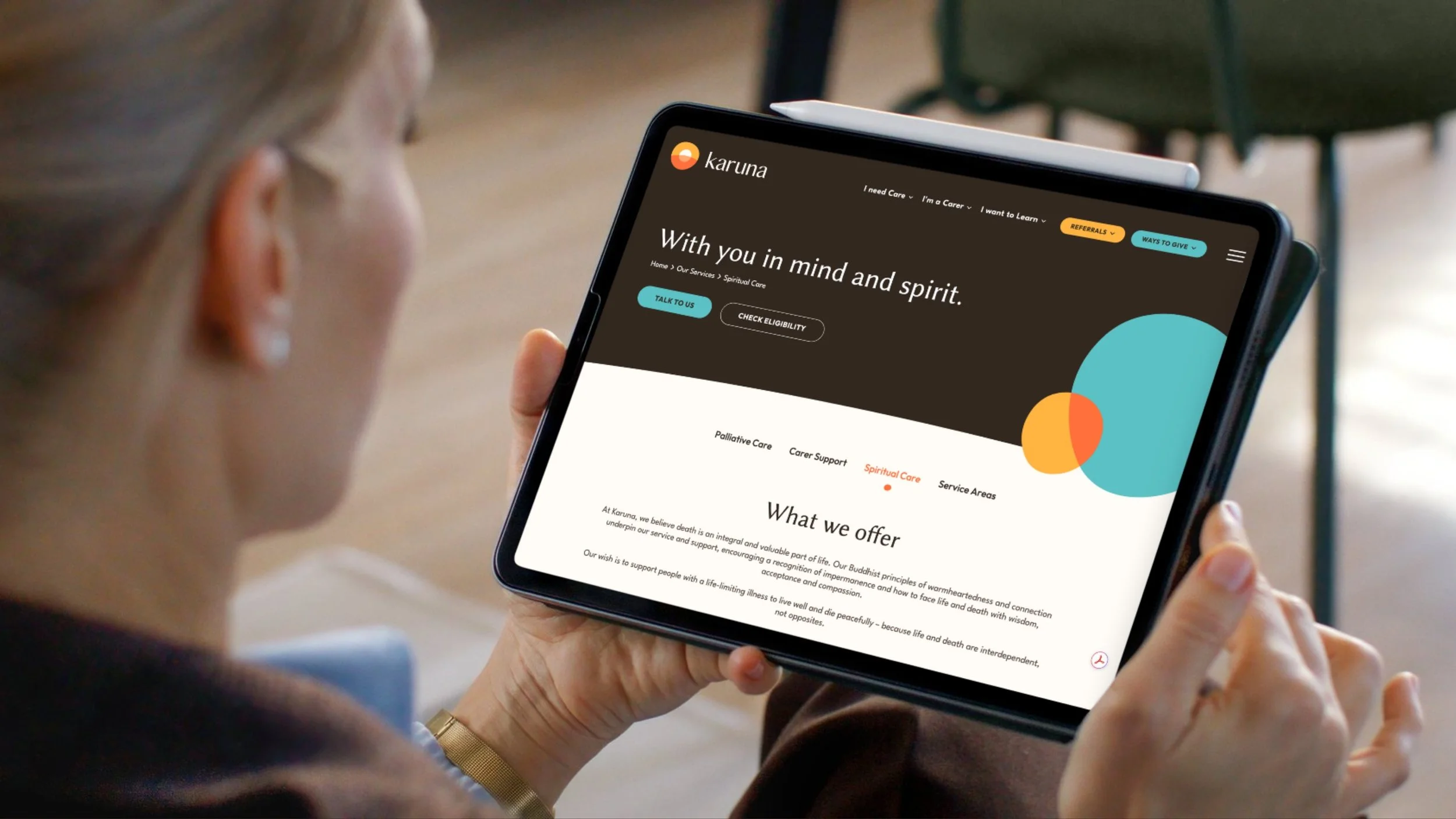 As a specialist in-home palliative care provider, Karuna was facing a digital challenge - to evolve their outdated website into a compassionate, information-immersive online hub. Karuna wanted to bridge the gap between service delivery and connection with the community - empowering people to build their death literacy and find clarity and comfort online, while navigating one of life’s most challenging chapters.